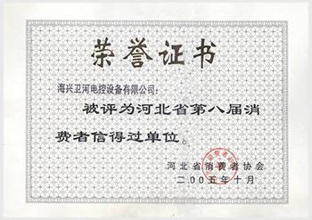河北省省消費(fèi)者協(xié)會 榮譽(yù)證書