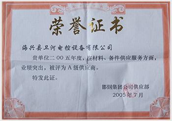 邯鋼集團(tuán)公司供應(yīng)部 榮譽(yù)證書